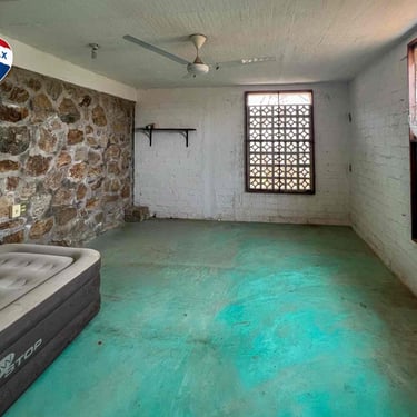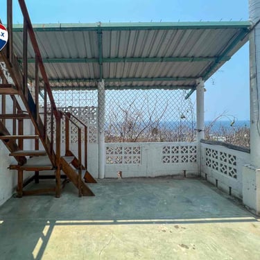 En el primer nivel de la propiedad se encuentra un baño, una bodega y la cocina, la cual se puede abrir y unirse con la terraza principal, ofreciendo vistas al mar y al resto del terreno. En la planta baja cuenta con una amplia recámara, un baño y una bodega. En el exterior, en el nivel más bajo, se encuentra una bodega más grande con un tanque de agua con capacidad de 1100 litros.